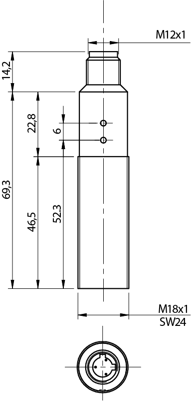C18P/BP-1E, czujnik pojemnościowy, zasięg 3-8mm, PNP, NO+NC, IP68, konektor M12, obudowa plastikowa M18, 10-40VDC, Micro Detectors