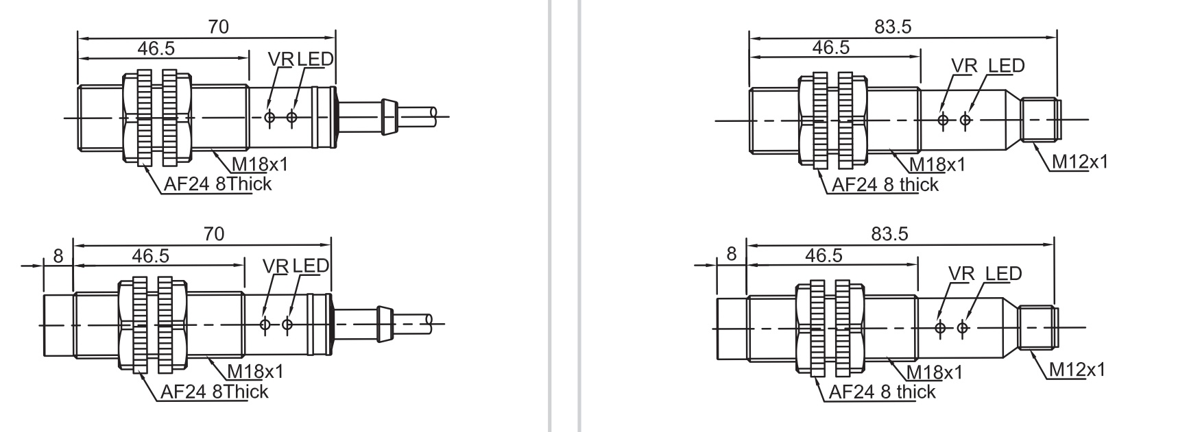 CR18SCN08DNO-E2 – czujnik pojemnościowy, zasięg Sn=8mm, NPN, NO, konektor M12, obudowa M18, Lanbao