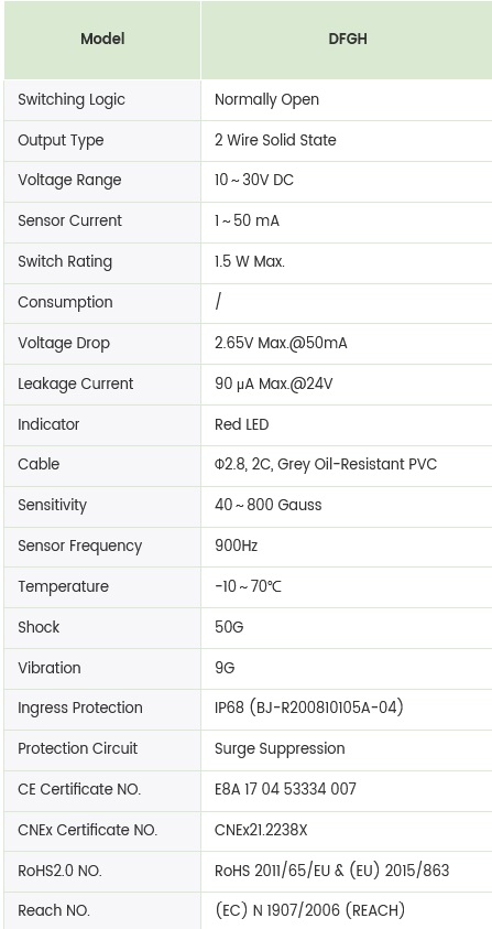 Czujnik DFGH czujnik magnetyczny 2-przewodowy, NO, 10-30V DC, IP68, rowek C