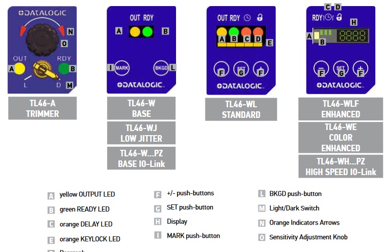 | 954601050 | TL46-WLF-815L = Contrast sensor 8mm. enhanced horizontal spot RGB Emission remote /dynamic acq. input npn/pnp out |