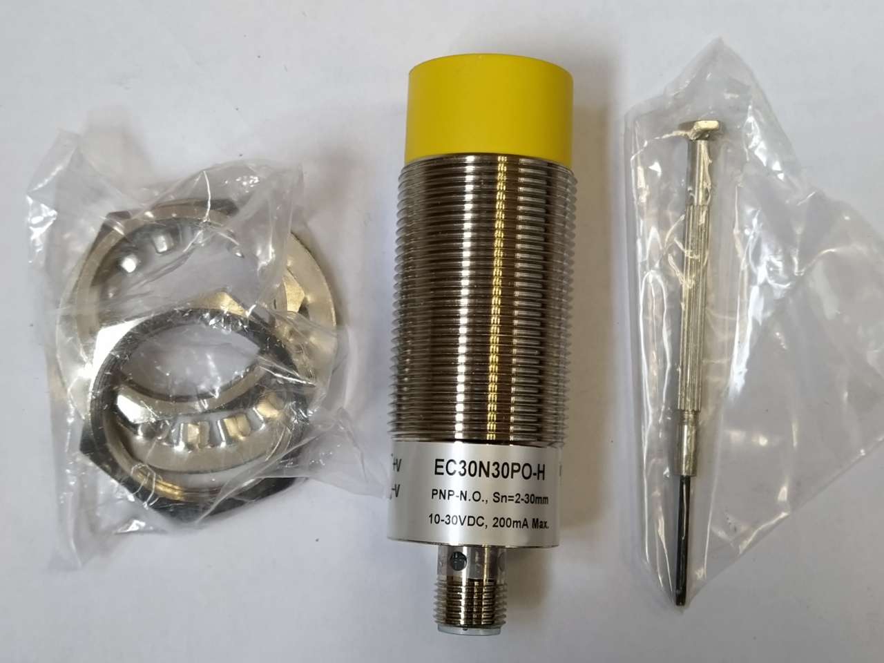 EC30N30PO-H- czujnik pojemnościowy, M30, zasięg 2-30mm, PNP, NO, konektor M12, obudowa metalowa, IP67, dioda LED, 10-30V DC, Indual