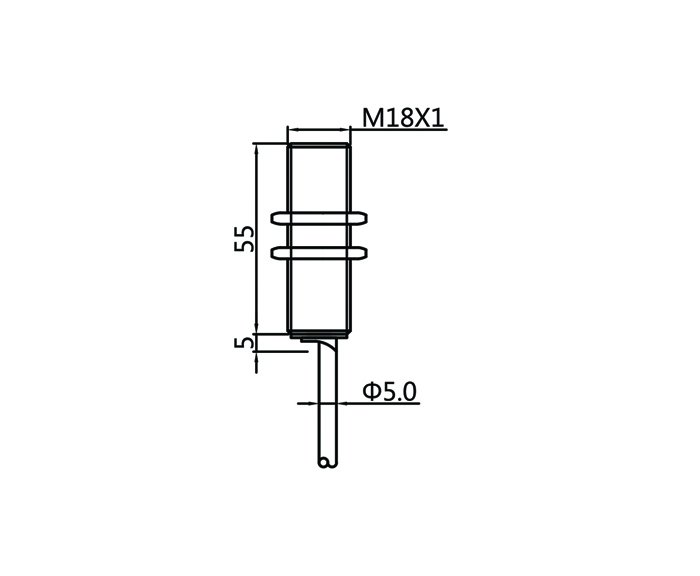 Cylindryczny czujnik indukcyjny z gwintem o rozmiarze M18. Posiada on zasięg do 12mm, czoło wbudowane w kolorze żółtym. Polaryzacja tego czujnika to PNP (tak zwane sterowanie plusem), wyjście normalnie otwarte (NO). Podłączenie odbywa się 3 żyłowym kablem o długości 2m. Posiadamy różne długości tego czujnika ( 55/61/70 mm), w zależności od potrzeb.