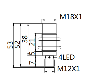 EL18N16PR-H (79) – czujnik indukcyjny M18, Sn=16mm, PNP NO/NC, konektor M12, długość 79mm, Indual EcoLine