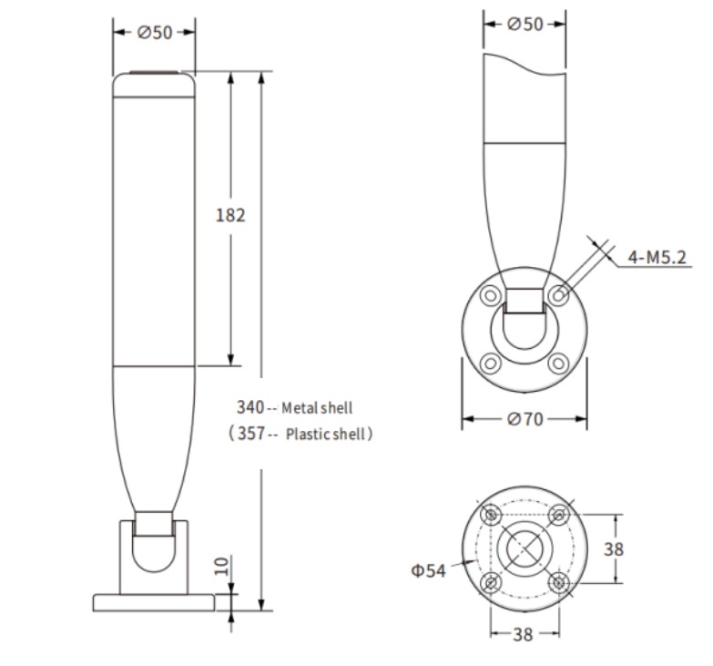 • Kolumna LED FL-TQ50-RGYM-24 – 3 kolory+ buzzer, 24VDC, budowa jednolita – kształt kija baseballowego, obudowa plastikowa (chromowane ABS)