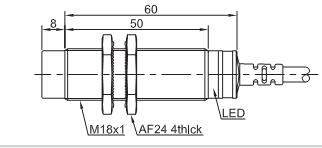 LR18XCN08ATO, czujnik zbliżeniowy, indukcyjny, zasięg Sn=8mm, 2-przewodowy, NO, zasilanie 20-250VAC, przewód 2m, obudowa M18, Lanbao