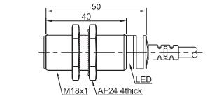 LR18XBF05DLC – czujnik zbliżeniowy, indukcyjny, zasięg Sn=5mm, 2-przewodowy, NC, obudowa M18, kabel 2m