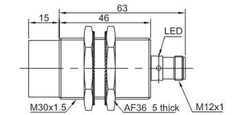 LR30BN22DPOY-E2, czujnik zbliżeniowy, indukcyjny, zasięg 22mm, PNP, NO, konektor M12, obudowa M30, Lanbao, LR30XBN22DPOY-E2