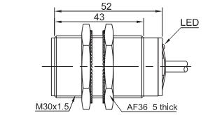 LR30XBF15DLOY – czujnik zbliżeniowy, indukcyjny, 2-przewodowy, zasięg Sn=15mm, NO, obudowa M30, kabel 2m