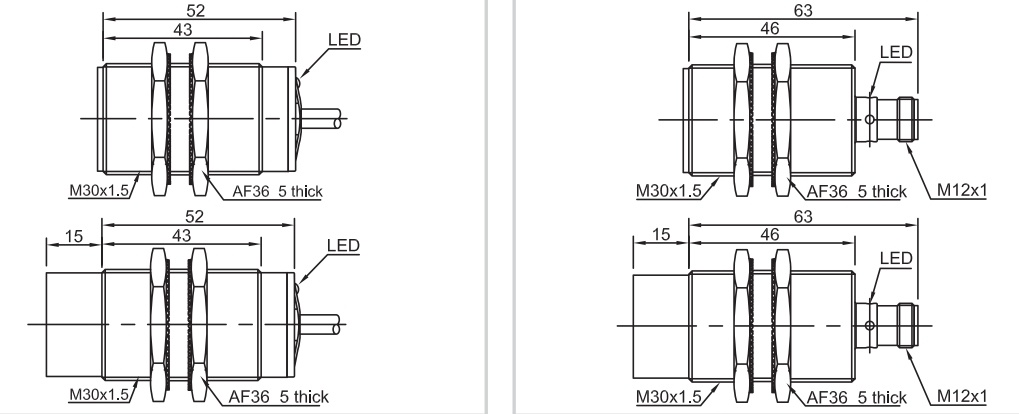 LR30XBN22DLOY-E2 – czujnik zbliżeniowy, indukcyjny, zasięg Sn=22mm, 2-przewodowy, NO, obudowa M30, konektor M12, Lanbao