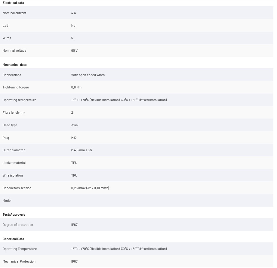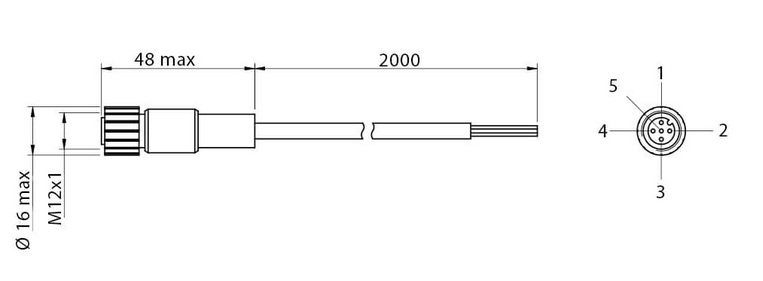 MDE12-N5F2-U, przewód 2m, złącze M12, proste, żeńskie, 5-pin, PUR