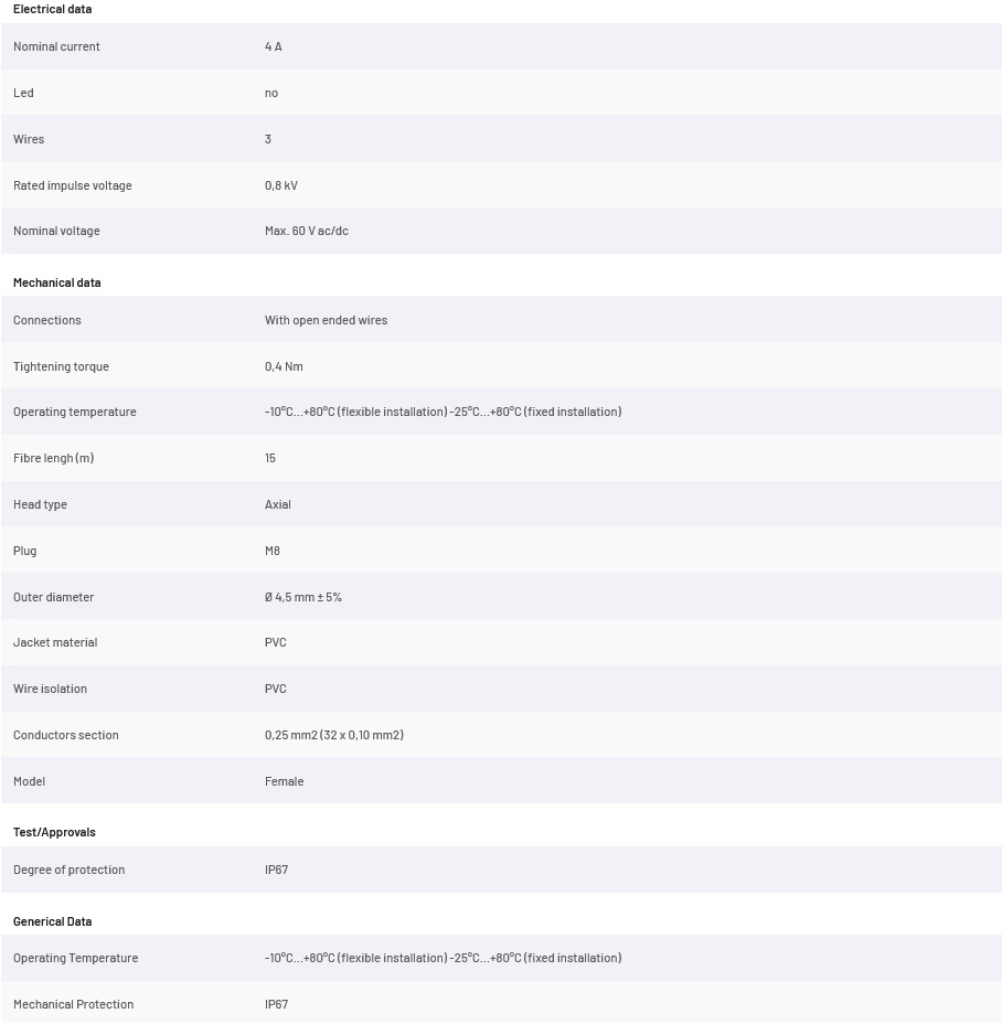 MDE8-N3F15, przewód 15m, złącze M8, proste, żeńskie, 3-pin