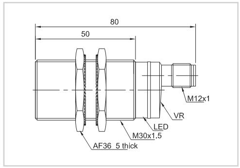 PR30-BC100DPR-E2 – czujnik odbiciowy, zasięg Sn=100cm, PNP, NO+NC, konektor M12, metalowa obudowa, Lanbao