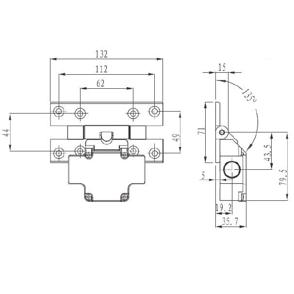 Wyłącznik bezpieczeństwa zawiasowy do drzwi i klap, styki 2NC+1NO, tworzywo sztuczne wzmacniane włóknem szklanym, 2 zawiasy w zestawie. Producent Suns.