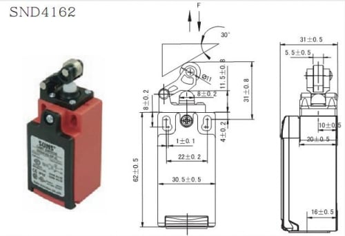 | Standardowa konfiguracja styków: | SP: 1NO+1NC – styk migowy (Snap Action) |