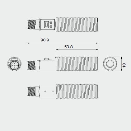 | 95B040030 | US18-PR-5-N03-IH = Ultrasonic M18 radial – 4-20 mA analogue – M12 |