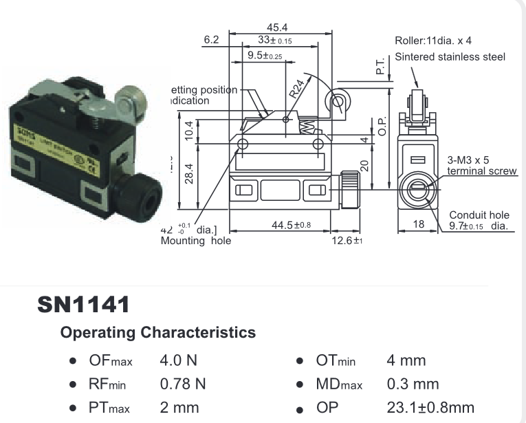 Wyłącznik krańcowy, mikrowyłącznik SN1141 SUNS