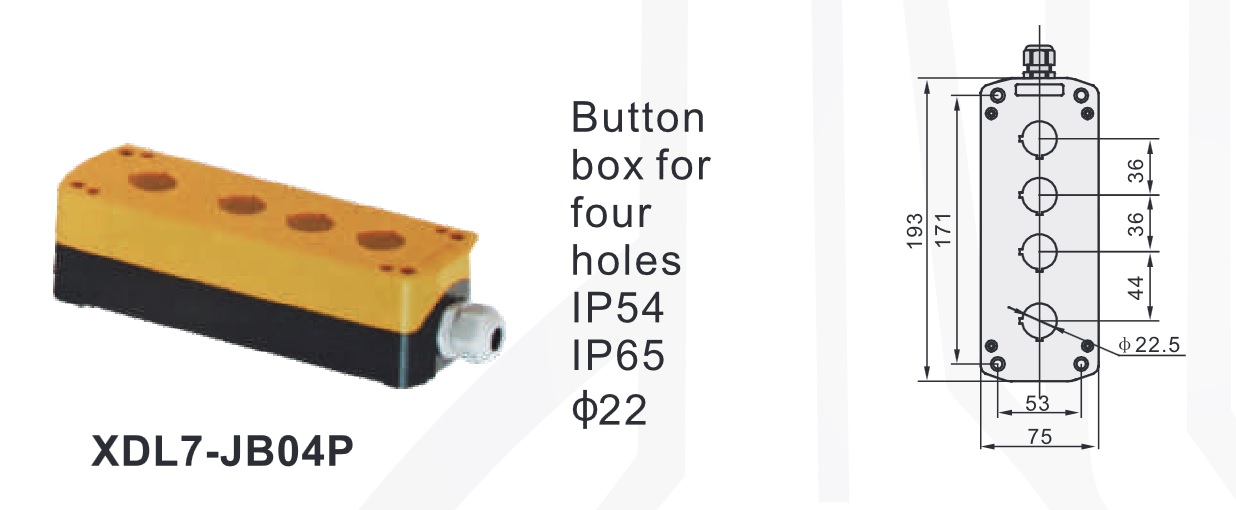 XDL7-JB04P – żółta kaseta sterownicza z 4 otworami 22mm, z dławikiem